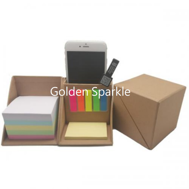 環保外殼,帶儲物空間,亦可做手機支架使用,內含本色便簽本各100張,5色便籤條各25張,黃色便簽本50張。