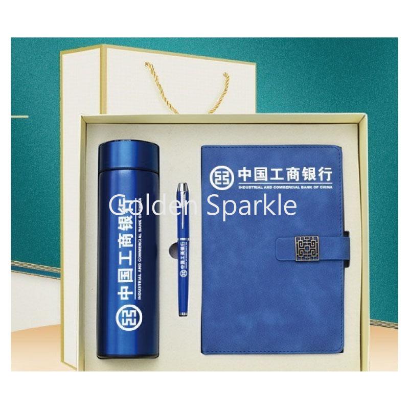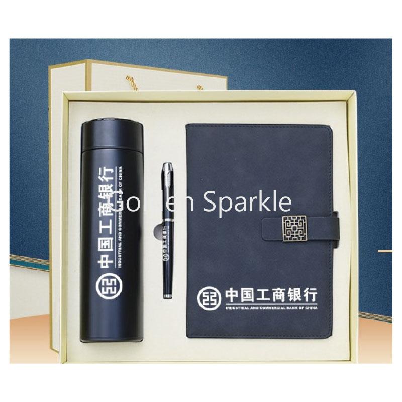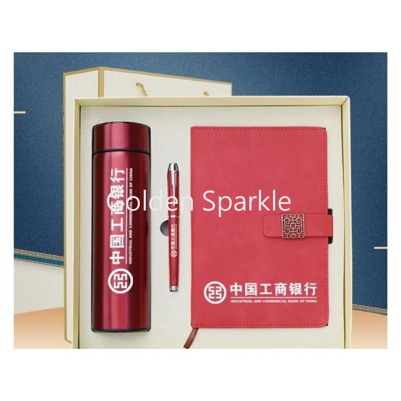 內容物為筆記本、金屬筆、保溫杯