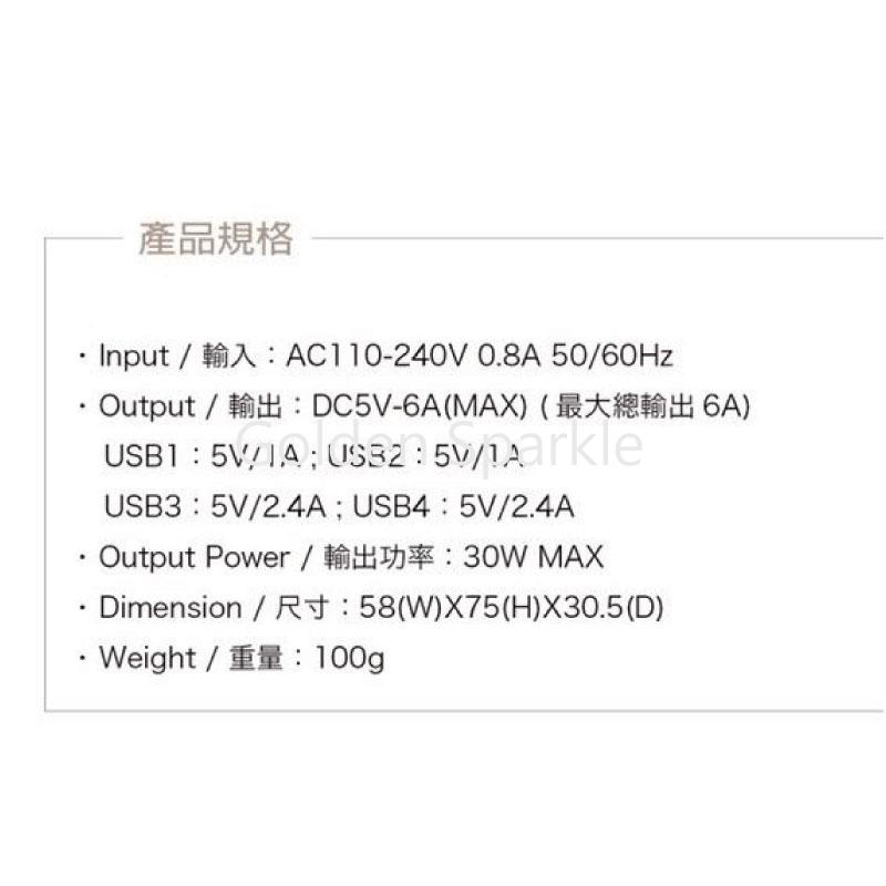 Output/輸出:DC5V-6A(MAX)(最大總輸出6A)