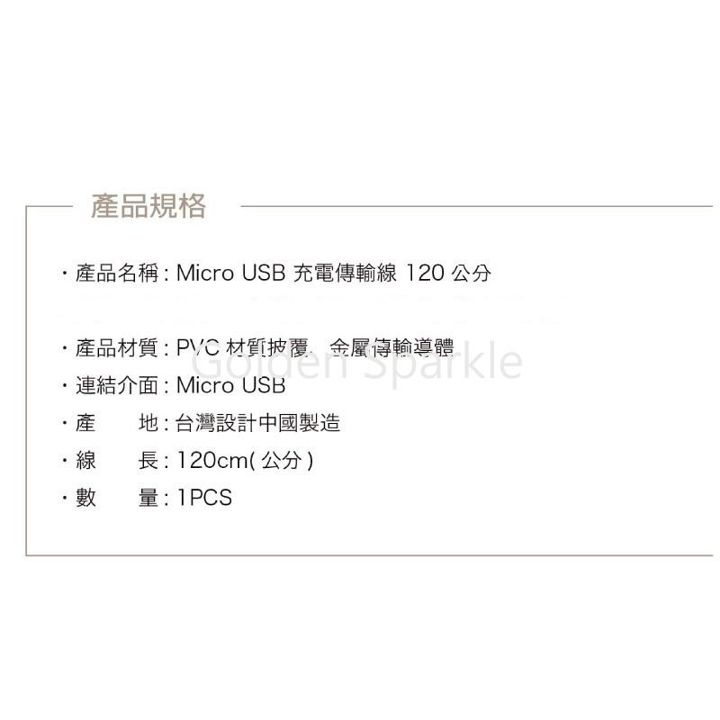 產品名稱:Micro USB充電傳輸線120公分