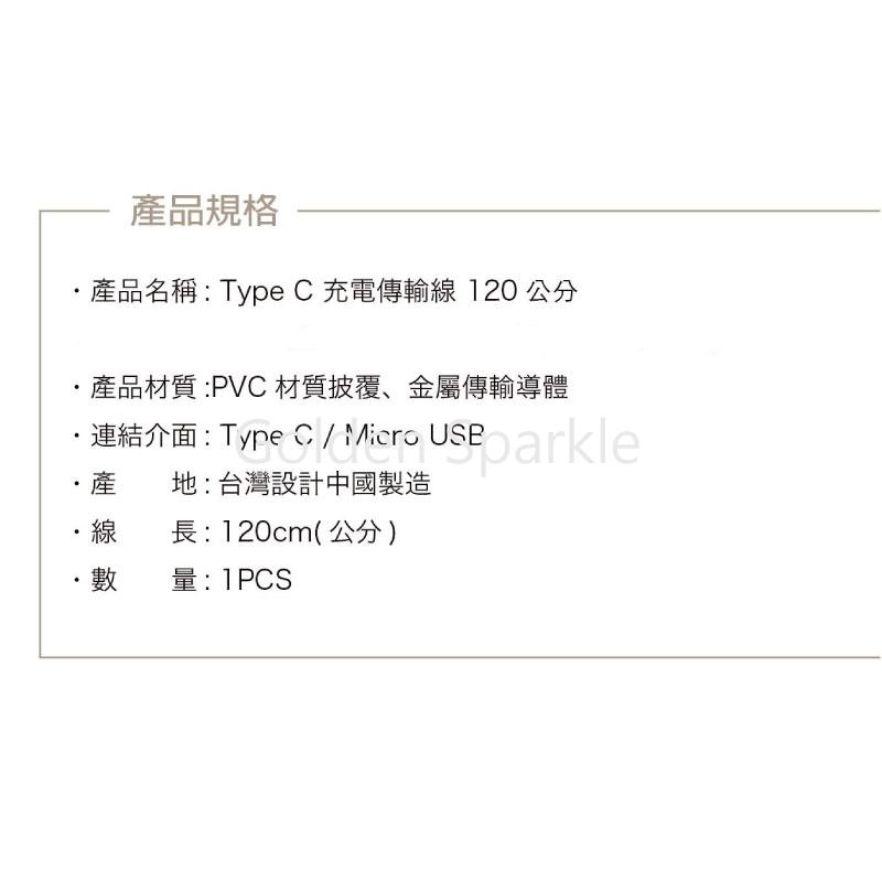 產品名稱:Type C充電傳輸線120公分
