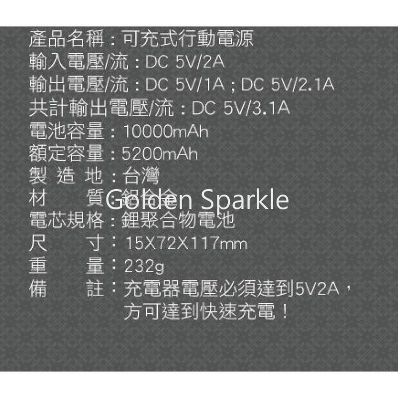 電池容量:10000mAh 額定容量:5200mAh 製造地:台灣
