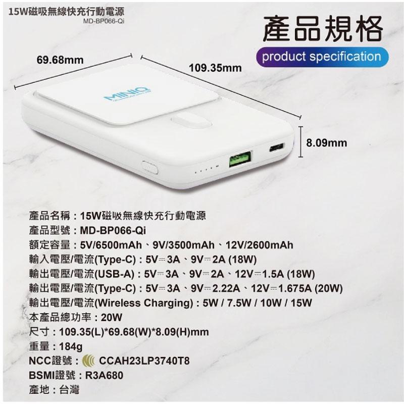 15W磁吸無線快充行動電源