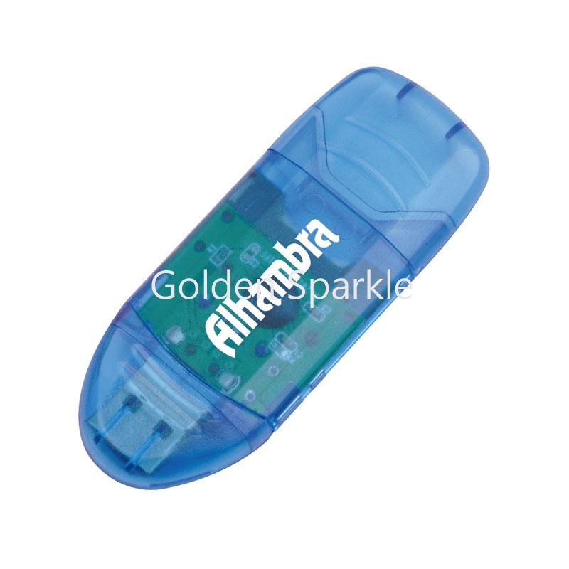 支持SD/MMC/RS MMC/MIMI SD (需適配器)/T-FLASH(需適配器),外形似U盤,超輕超小設計,是PDA,數碼相機,手提電腦的最佳組合,也可以作為軟驅使用