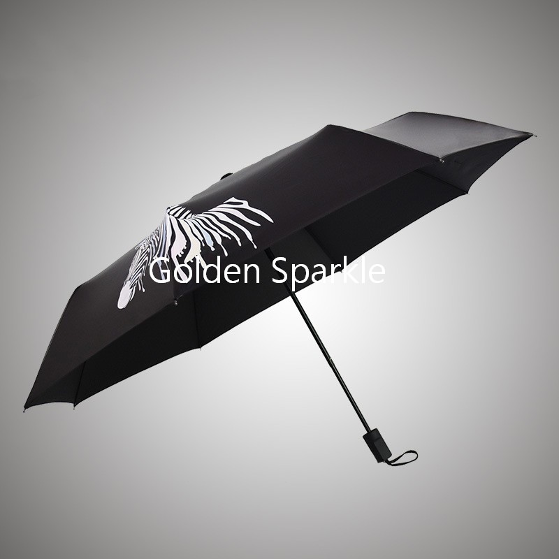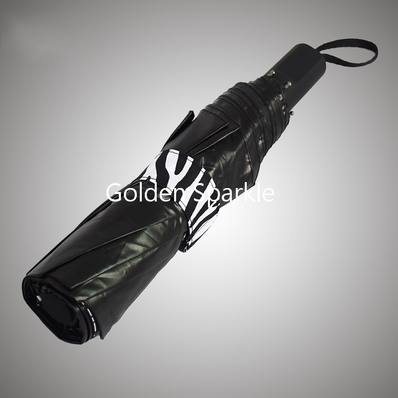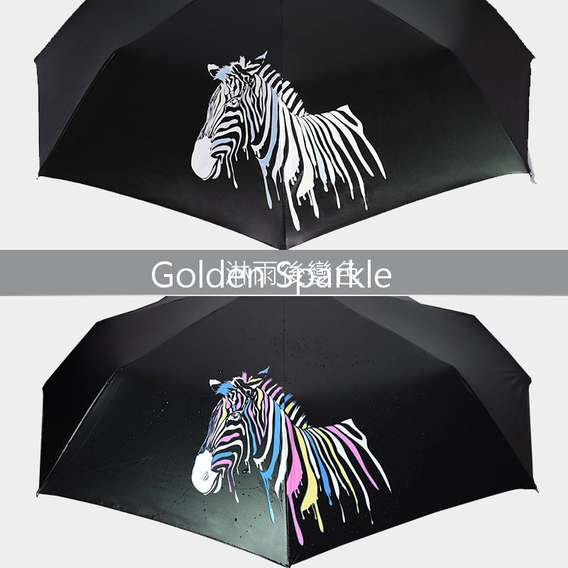 遇水變色斑馬晴雨傘三折黑膠