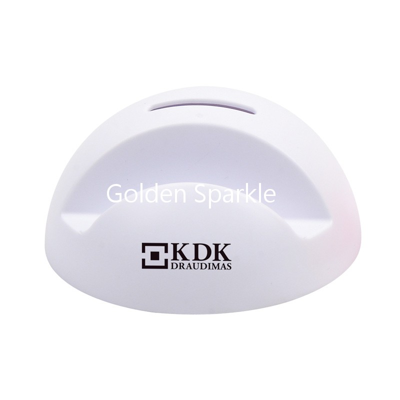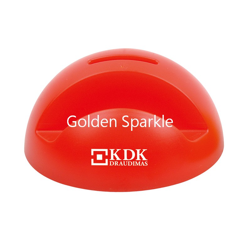 塑膠大身,半球型設計,頂部一個投幣孔,底部配同色取幣口,正面帶數碼產品支架,越多的硬幣能讓底座越穩固。